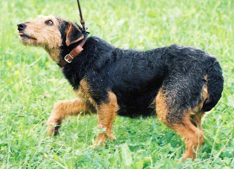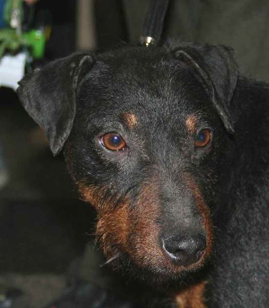 The German Hunting Terrier is a small, generally black and red, compact and shapely hunting utility dog.
