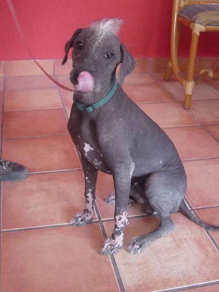 - Hairless variety: The characteristic of this breed is the total absence of hair on the body. (hairless or naked dog); although it has some hirsute hairs, short and dense of any other color on the forehead and nape of the neck, but it should never be longer than 2.5 centimeters and should never form a long, soft pompadour. It is common to find rough hair on the feet and at the end of the tail.; If it does not exist, it should not be penalized.