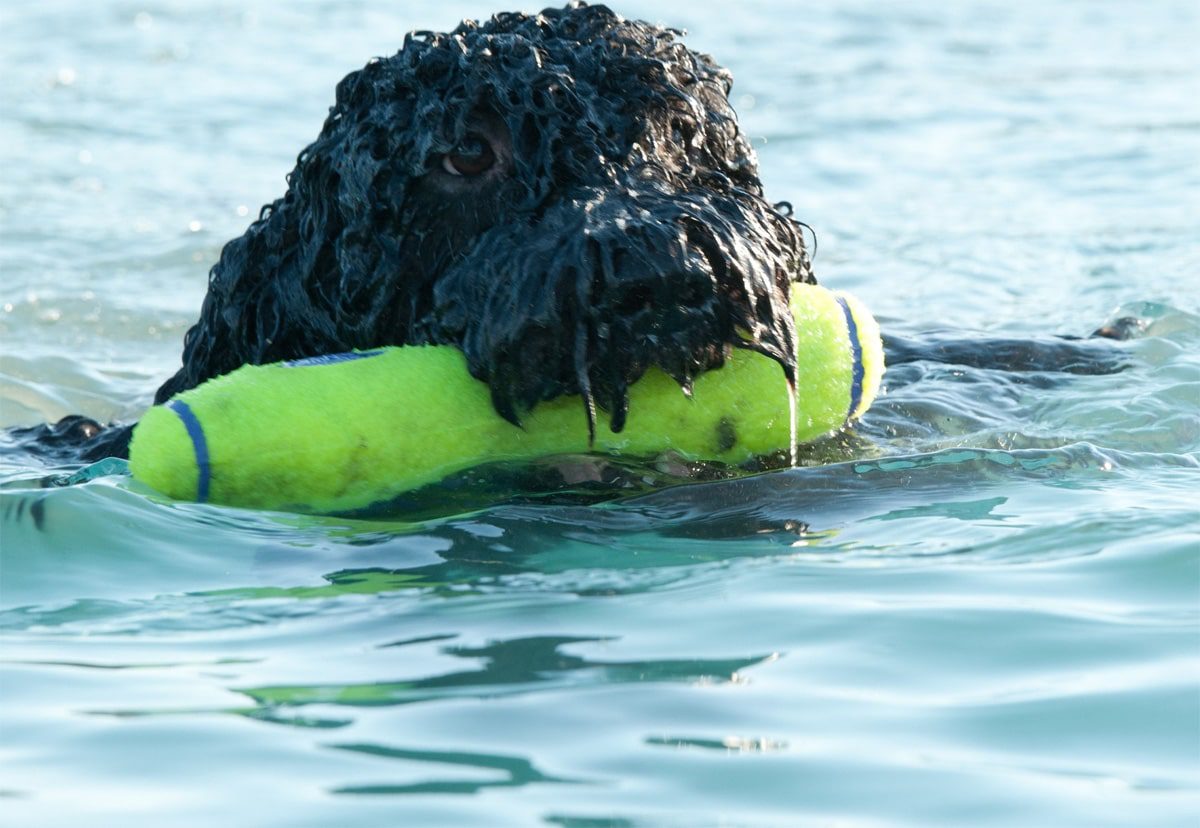Barbet (Chien d'eau français) récupération de l'eau.