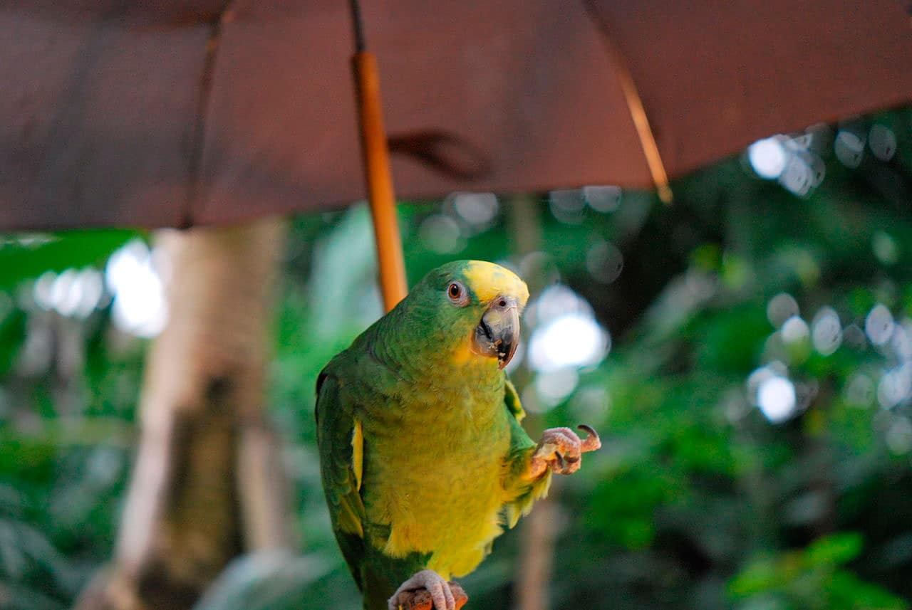 (1) – Amazone tavoua à Loro Parque, Teneriffe par œuvre dérivée: Snowmanradio (parler)Festive_Amazon_BW. JPG: Berthold Werner (Festive_Amazon_BW. JPG) [Domaine public], Via Wikimedia Commons